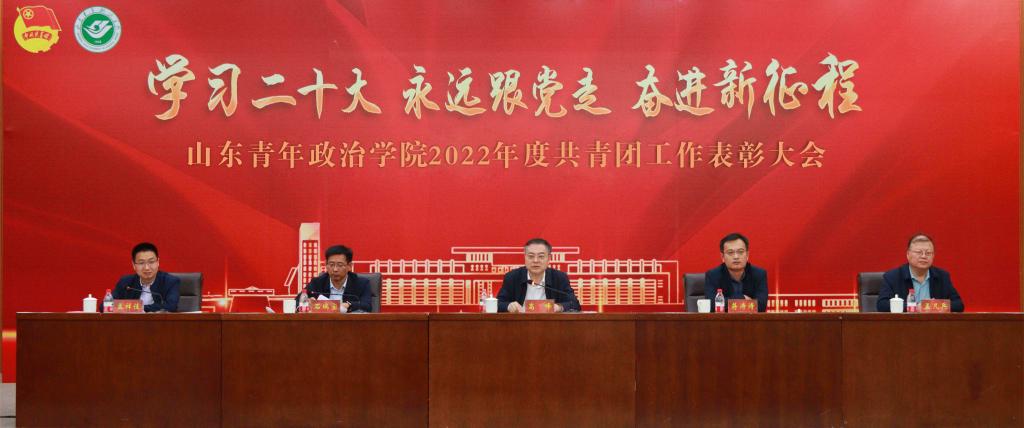 学生工作部(处)部(处)长石瑞宝宣读《关于表彰2022年度山东青年政治学院共青团工作先进集体和先进个人的决定》。红旗团总支、红旗团支部、优秀团干部、优秀团员以及优秀志愿服务团队、优秀志愿者等获奖代表先后上台领奖。