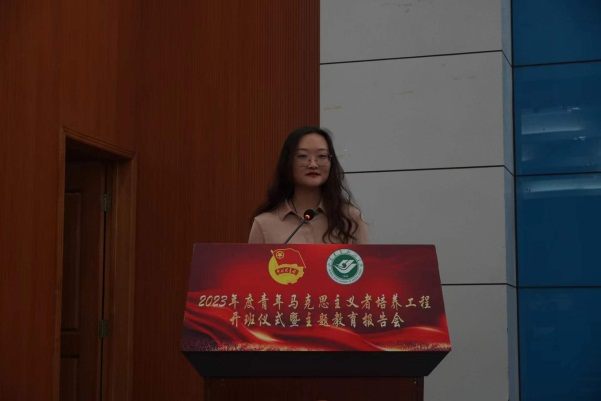 为深入学习贯彻党的二十大精神,不断把学习贯彻习近平新时代中国特色社会主义思想主题教育引向深入,5月24日,我校举行2023年度青年马克思主义者培养工程开班仪式。学校党委副书记高峰,学校党委委员、组织部部长、宣传部部长蒋涛涛,学生工作部部长石瑞宝,团委书记孟祥佳出席开班式。各学院党委副书记、团总支负责人、2023年度青马班全体学员、校学生会骨干、各学生社团负责人、部分学生党员代表参加此次活动。活动由学生工作部部长石瑞宝主持。开班仪式分两个阶段进行。