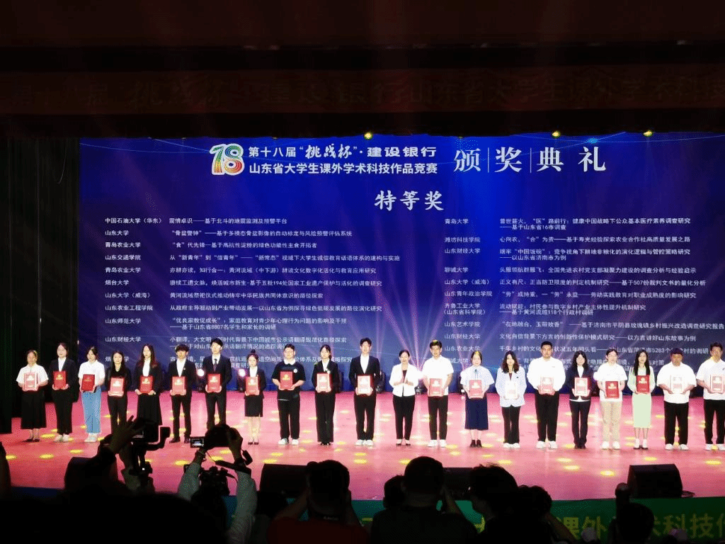 5月20日至22日,由团省委、省教育厅、省科技厅、省科协、省社科院、省学联主办的第十八届“挑战杯”大学生课外学术科技作品竞赛省赛终审决赛在齐鲁工业大学(山东省科学院)举办。我校2个项目进入终审决赛,经过激烈角逐,最终来自经济管理学院杨敏老师指导的《劳”成持重,一“劳”永益一一劳动实践教育对职业成熟度的影响研究》项目获省赛特等奖,并获推国赛资格;来自外国语学院王琳涵老师指导的《基于相关性分析与LSTM算法的河流污染预案应用研究—以小清河济南段为例》的项目获省赛一等奖。另外,政治与公共管理学院的《“舜风化雨 筑梦青年”:舜文化融入高校思政教育的路径探究—以山东省14所高校调研为例》、《以“教”之名 ,助梦济沧海:“希望小屋”困境儿童成长陪伴路径研究—以麦德森集团“博士学堂”公益项目为例》和外国语学院的《“以带促建、整体推进”:县域共青团基层组织改革的路径探究一基于济南市历城党建带团建工作的调查》3项作品获评省赛三等奖。本届赛事,我校推荐的8项作品中有5项获奖,并有1项作品获省赛特等奖且获推国赛资格,取得了我校自参加“挑战杯”大学生课外学术科技作品竞赛以来的最好成绩,获奖作品重量和数量实现双突破。